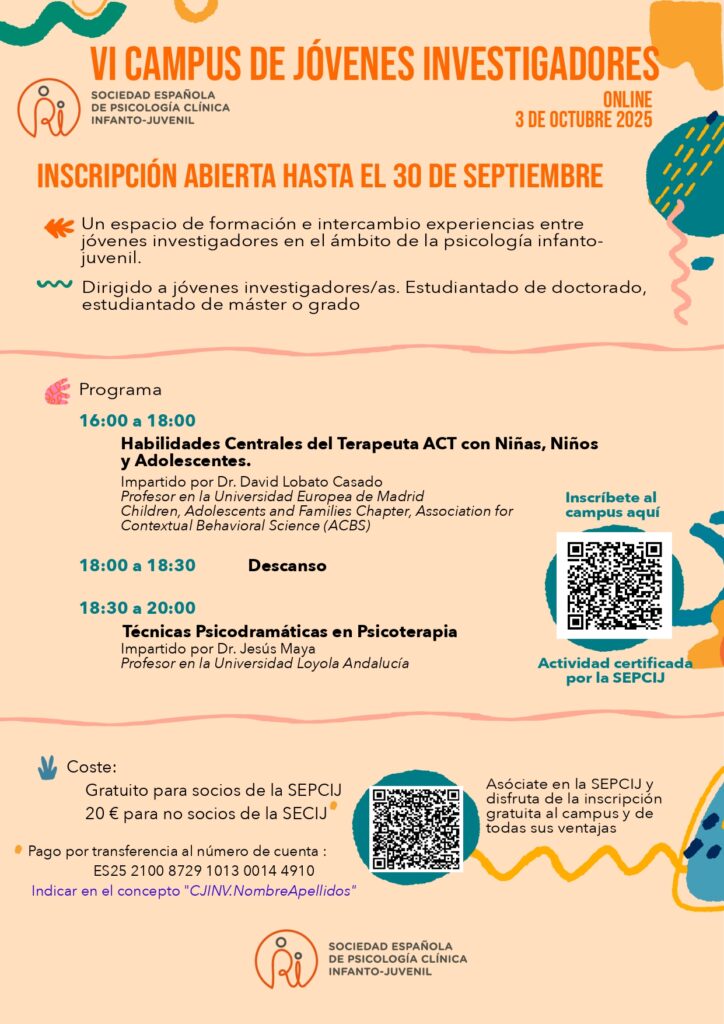 18.00 h – La vanguardia en investigación en psicología clínica y de la salud en la infancia y adolescencia